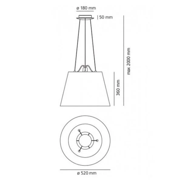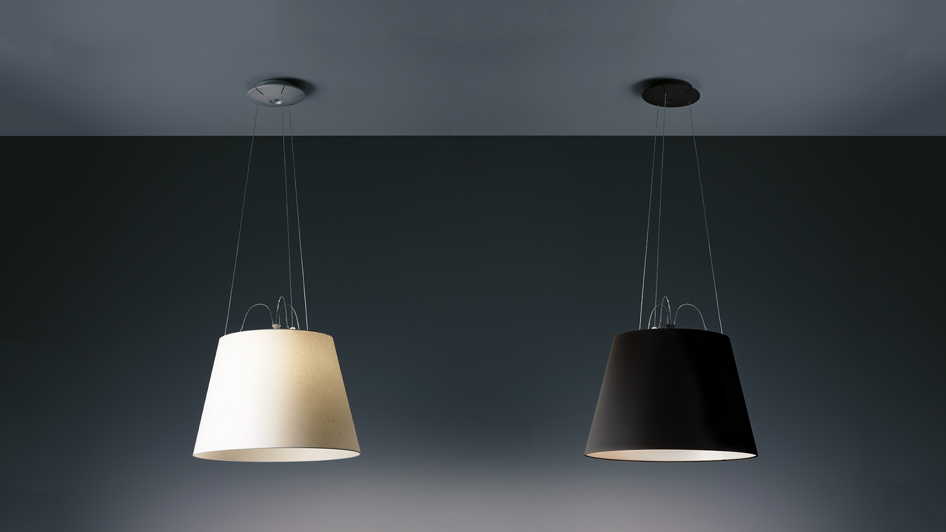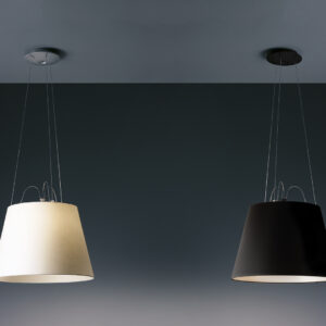 En la versión Mega Sospensione, el difusor de Tolomeo, en dos tamaños distintos, está suspendido para una solución sencilla y elegante, perfecta tanto por separado como en combinación con la amplia gama de versiones de la familia Tolomeo.